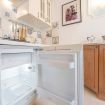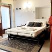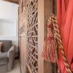 Lo spazio è suddiviso in zona giorno e zona notte, separate da un elegante paravento in legno stile indiano, che garantisce comfort e privacy.